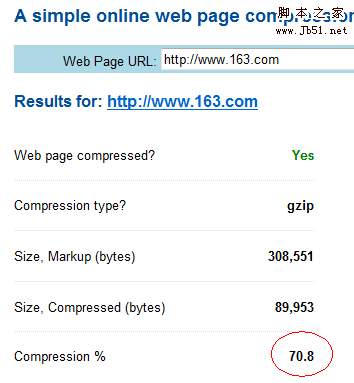 該工具地址http://www.gidnetwork.com/tools/gzip-test.php 大家也可以測試下自己的網站壓縮后的情況。