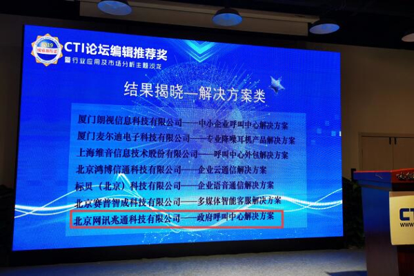 2019年12月20日,“行業(yè)應(yīng)用及市場分析主題沙龍暨2019年度CTI論壇編輯推薦獎(jiǎng)?lì)C獎(jiǎng)”活動(dòng)在北京成功召開,來自于幾十家業(yè)內(nèi)機(jī)構(gòu)的近兩百名CTI和呼叫中心行業(yè)專家、主流廠商以及行業(yè)用戶出席本次了活動(dòng),呼叫易榮獲“政府呼叫中心解決方案和最佳技術(shù)”兩項(xiàng)大獎(jiǎng)。