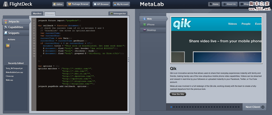 這家被抄襲的公司叫 MetaLab, Mozilla 的這款產品叫 Jetpack,是一個用來設計 Firefox 擴展的平臺,從產品截圖上來看,該產品的界面幾乎全盤照搬了 Metalab 的網站設計。