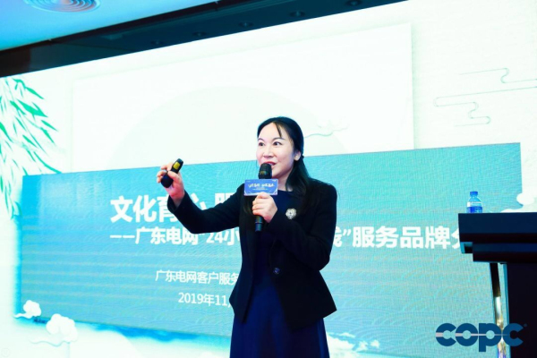 簡短茶歇后,廣東電網客戶服務中心副主任葉慧萍女士為大家帶來了《文化育心服務育行--廣東電網“24小時能量在線”服務品牌分享》的演講:電力作為傳統壟斷行業,如果只從傳統行業的思維角度去思考,不跟著服務潮流走,就會脫離服務的趨勢和要求,逐漸達不到顧客的期望。民生行業是根基,讓老百姓用好電,滿意的用電是我們不可逃避的使命,所以,經過考察和決策,我們還是決定將國際化的高標準引入管理工作。我們很多員工都是剛畢業的外包員工,為了幫助他們建立價值感,代表企業服務好顧客,我們做了“24小時能量在線”的服務文化品牌,其中因材施教,實現能量動態管理,“三師”、“四禮”,提供能量補給,重塑運營規范,將COPC標準體系深入貫徹到日常運營管理。
