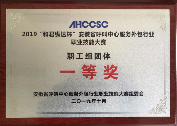 安徽95113呼叫中心斬獲頗豐,由王莉莉、李項玉、陳蓉、祈羽茜、朱丁丁組成的參賽隊奪得企業組團體一等獎,王莉莉、李項玉取得個人一等獎,陳蓉、祈羽茜取得個人二等獎,朱丁丁取得個人三等獎。