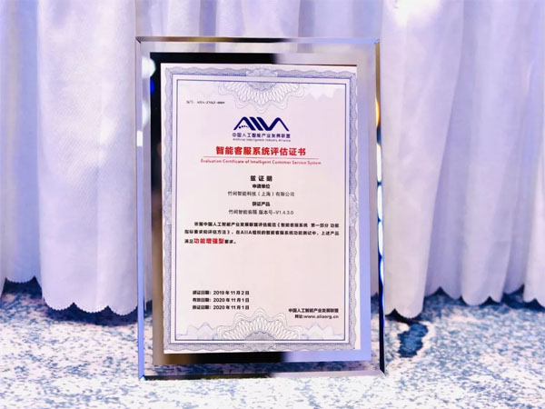 竹間智能的智能客服系統在中國信息通信研究院和AIIA組織的智能客服系統功能測試中滿足功能增強型要求,即具備多類型信息識別能力,具備高度智能化上下文語義理解能力。