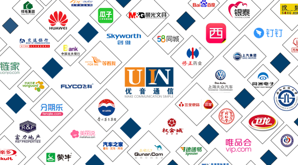 除此之外,優音通信也一直與國內運營商保持長期穩定的戰略合作關系,技術能力和服務水平不斷得到客戶與合作伙伴的嚴苛認可,與亞馬遜中國、上汽集團、58同城、華為、百度、阿里釘釘等眾多世界五百強企業及知名客戶牽手共贏,不斷為各界企業客戶提供更可靠、更穩定、更安全、更便捷的通信服務,成為企業值得信賴的通信服務合作伙伴。