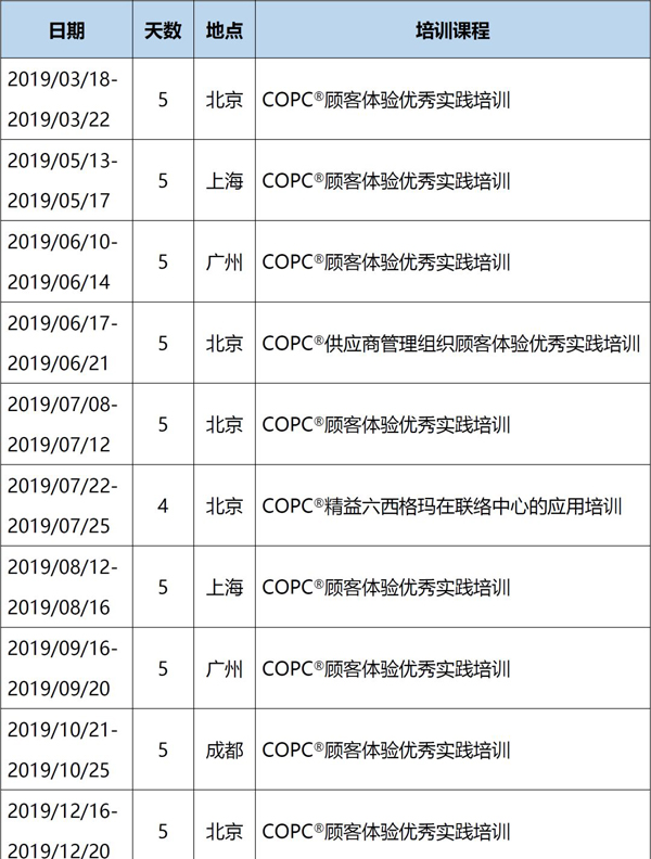 2019年COPC中國區(qū)公開課培訓(xùn)計(jì)劃