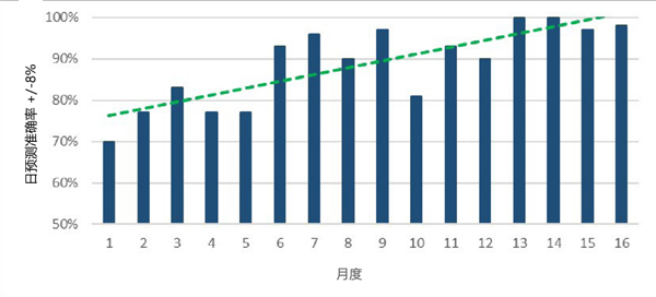 以下是22個(gè)主要客戶之一的預(yù)測(cè)準(zhǔn)確性,與大多數(shù)客戶的一樣,顯示出積極而強(qiáng)勁的長期改善趨勢(shì)。
