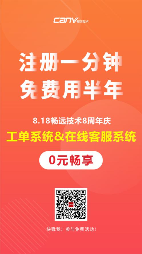暢遠技術8周年,為了回饋廣大企業客戶,“工單系統在線客服系統免費用半年”的活動已經正式開始啦!