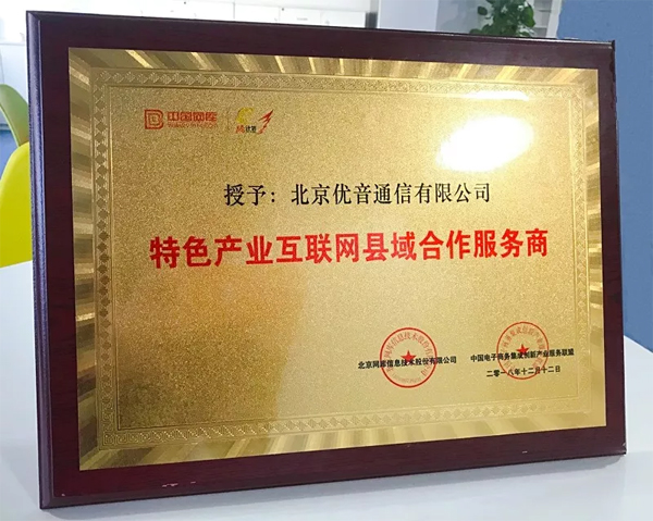 優(yōu)音通信曾被授予2018“特色產(chǎn)業(yè)互聯(lián)網(wǎng)縣域合作服務(wù)商”稱號(hào)