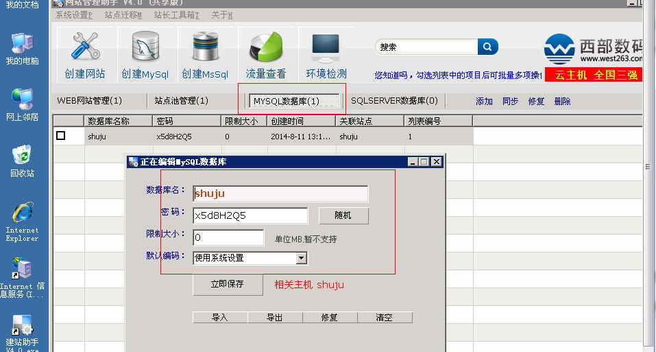 西部數碼網站管理助手管理助手,是一款自動建立虛擬主機站點的程序,通過這個程序可以自動建立IIS站點、FTP帳號、網站目錄、Mysql數據庫等,并且各網站以獨立用戶隔離運行,解決FSO安全風險。特別適合于租用云主機、VPS的站長使用。本軟件還搭配了自動化的服務器環境設置程序,能一鍵安裝PHP、Mysql、Zend、PhpMyadmin、FTp、Jmail等各種組件、自動對服務器進行安全設置防止黑客入侵,即使是不懂得服務器管理技術的非專業人員,也可以輕松管理服務器了。以下我們簡稱軟件為建站助手,可以在我們腳本之家下載到,安裝之后便來開始下面的教程。