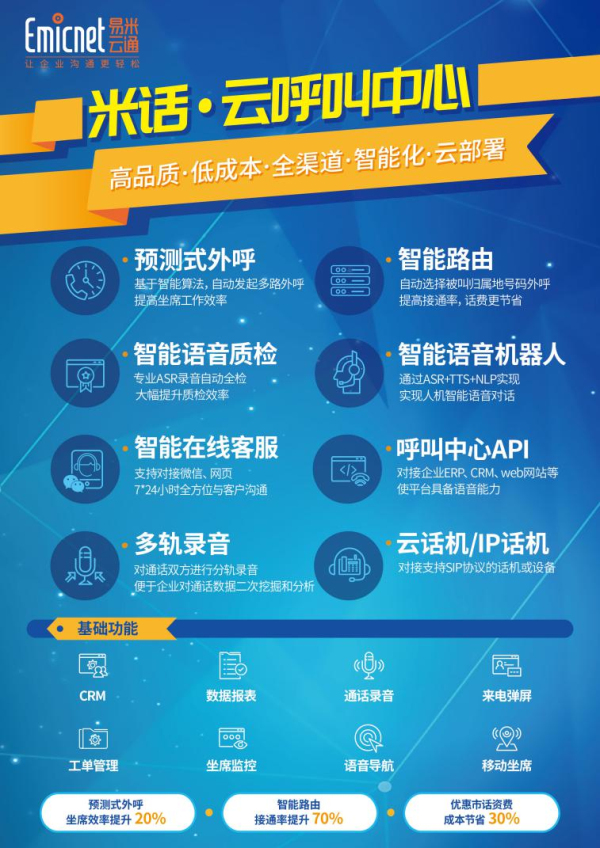 值得慶幸的是AI正在變革電話銷售行業的原有業態,嚴重依賴電銷的傳統保險企業有了“高智商高情商,永不言歇”的AI機器人協助開始變得精準高效,曾經讓保險企業管理者煩惱的高員工流失率問題也將被一并緩解。到此就必須談及專業智能語音平臺服務商--易米云通了。雖然國內各大保險企業還未效仿英國保險企業縮短工時,但是易米云通所搭建的融合SDV+AI的智能語音平臺4.0不僅可以緩解保險企業高員工流失率的問題,緩和電銷員日常不可把控的負面情緒,更可為保險企業降低營銷人力成本。并且,在話術標準化和工作流程化的科學管理基礎上,作為保險企業利潤中心的呼叫中心能夠為客戶提供更加優質的銷售和服務體驗,以此來為保險企業創造更高的成單轉化率。