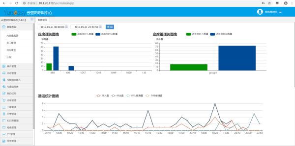 在歡迎使用界面以圖表形式展現座席通話統計數據、座席組通話統計數據,呼入呼出統計數據,通話情況一目了然。