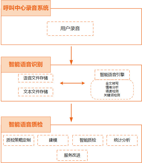 隨著人工智能技術的發展,通過智能語音識別、大數據挖掘等技術可以實時或離線地將海量錄音數據轉化為文本等非結構化的數據,實現了對語音文件的100%全覆蓋,大幅降低了人工質檢成本,通過對文本的分析和數據挖掘,可以實現對合規的檢查、風險的預警、趨勢的分析、商機的挖掘等