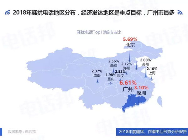 4、2018年詐騙電話地區(qū)分布,北上廣深仍是詐騙重災區(qū)