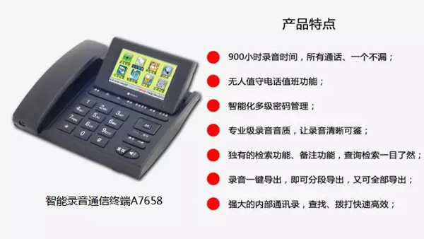 另外,分布式錄音遠(yuǎn)程管理系統(tǒng)配備的智能通信錄音終端擁有的超長(zhǎng)錄音功能,無人值守電話值班功能,智能化多級(jí)密碼管理,錄音一鍵導(dǎo)出,內(nèi)部通訊錄等優(yōu)勢(shì),先后受到四川省公安、河北省公安、江蘇省公安、湖北省公安、吉林省公安、山東省公安等眾多單位客戶的一致好評(píng)。