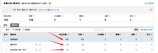 站長統(tǒng)計一月內(nèi)的點(diǎn)擊和搜索詞