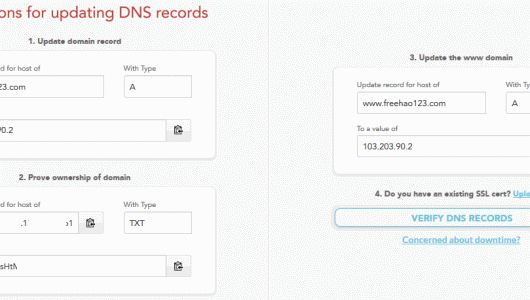 2、要想成功使用Kloudsec的免費CDN,主要是調整你網站的A記錄值為Kloudsec給的IP地址,同時修改域名的TXT記錄,以驗證域名所有權。