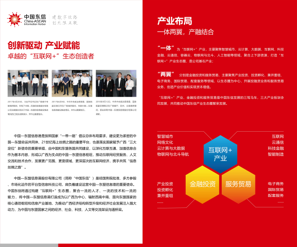 中國(guó)-東盟信息港股份有限公司(簡(jiǎn)稱(chēng)中國(guó)東信)是經(jīng)國(guó)務(wù)院批復(fù)成立的國(guó)有控股的平臺(tái)型信息科技公司,是唯一總部落戶(hù)廣西的“中國(guó)”字頭企業(yè),肩負(fù)著建設(shè)運(yùn)營(yíng)中國(guó)-東盟信息港的重要使命。