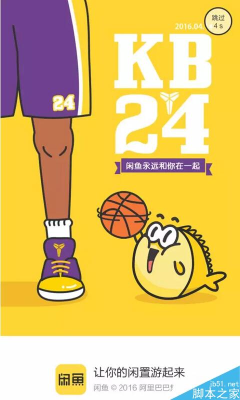 咸魚在科比告別賽當天做的啟動圖,文案是「永遠和你在一起」。意思是雖然科比不在球場上了,但我們還在。雖說不是特別貼切,但至少把熱點和產品結合起來了,能看出運營在這塊是有策略的。