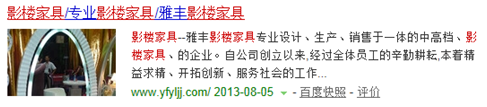 總之,將希望有排名的關鍵詞盡量布置在標題的前面。此處建議公司或品牌名稱放在標題的最后。原因很簡單,對于公司品牌詞幾乎沒有競爭度,優化難度不高,而產品詞相對有優化難度,所以將寶貴的“好鋼“位置留給”刀刃“吧。