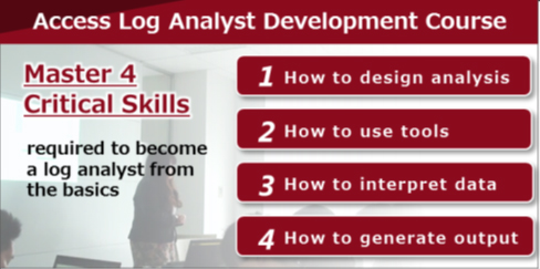 無論哪個(gè)課程方案都是從基礎(chǔ)開始教學(xué),歡迎不具備訪問日志基本知識(shí)或從未使用過這些工具的初學(xué)者參加本課程。transcosmos將基于每家企業(yè)的業(yè)務(wù)發(fā)展目標(biāo)提供匹配的課程,例如企業(yè)希望其員工掌握何種技能、學(xué)習(xí)者希望如何利用訪問日志來實(shí)施業(yè)務(wù)等。