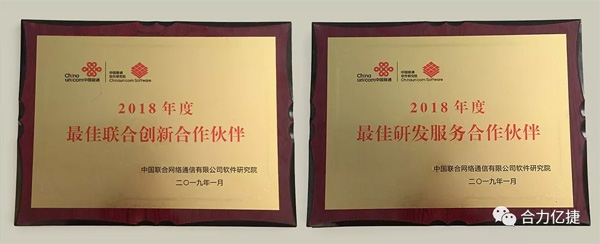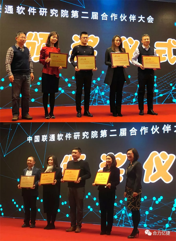 2019年1月8日,中國聯通軟件研究院第二屆合作伙伴大會在北京隆重舉行。本屆大會主題為“共建IT新生態”,吸引了眾多合作伙伴和業界精英蒞臨參與。北京合力億捷科技股份有限公司(以下簡稱:合力億捷)在此次大會上榮獲“2018年度最佳研發服務合作伙伴”和“2018年度最佳聯合創新合作伙伴”兩大重要獎項。