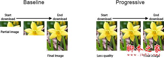 這種類型的JPEG文件存儲方式是按從上到下的掃描方式,把每一行順序的保存在JPEG文件中。打開這個文件顯示它的內容時,數據將按照存儲時的順序從上到下一行一行的被顯示出來,直到所有的數據都被讀完,就完成了整張圖片的顯示。如果文件較大或者網絡下載速度較慢,那么就會看到圖片被一行行加載的效果,這種格式的JPEG沒有什么優點,因此,一般都推薦使用Progressive JPEG