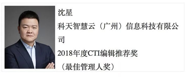科天云副總經(jīng)理沈星獲得2018年度CTI編輯推薦獎——最佳管理人獎。