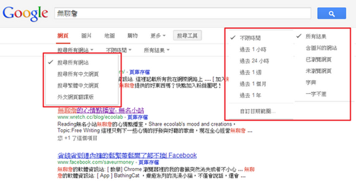我們先來復(fù)習(xí)一下以往我們最常使用的搜尋方式,直接輸入搜尋的關(guān)鍵字,頂多選擇搜尋所有網(wǎng)站還是繁體中文、時(shí)間點(diǎn)、再來就是以簡單的空白鍵區(qū)隔不同關(guān)鍵字,但仍然很難在搜尋結(jié)果中迅速鎖定目標(biāo)。
