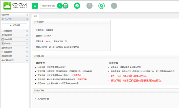 9、各類報(bào)表查看:包括呼入呼出報(bào)表、接通率、話務(wù)統(tǒng)計(jì)等。