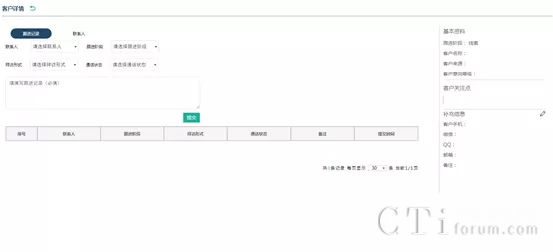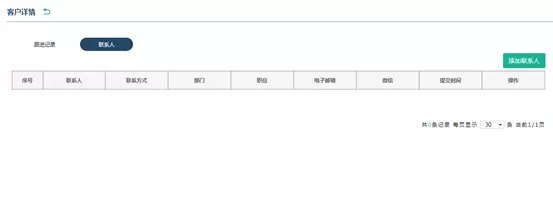 在我的客戶頁(yè)面,雙擊客戶列表可查看客戶詳情,包含所有歷史跟進(jìn)記錄以及聯(lián)系人信息。在該頁(yè)面可以新增跟進(jìn)記錄、聯(lián)系人,修改客戶信息。
