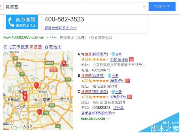 這塊是息心SEO在研究百度霸屏的時候發現的,當搜索一家商戶的時候,出現了百度地圖,而展示的結果也是我所在的區域。