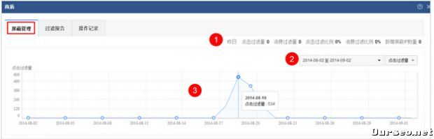 1.可以快速瀏覽昨天的點擊過濾量、消費過濾量、點擊過濾比例、消費過濾比例、新增屏蔽IP數量。