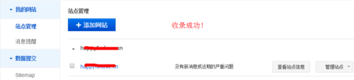 8、返回“站點管理”,網址就被百度添加,如圖: