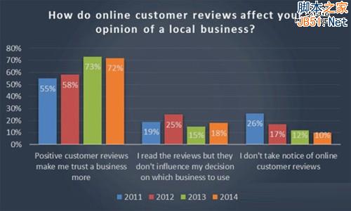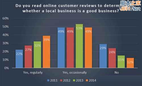 1、88%的人閱讀評論來確定本地業(yè)務(wù)的質(zhì)量(2013年的比例是85%)