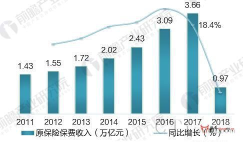 2017年,保險全行業共實現原保險保費收入3.66萬億元,同比增長18.4%。其中,財產險公司和人身險公司分別增長13.76%和20.04%。保險業資產總量16.75萬億元,較年初增長10.8%。