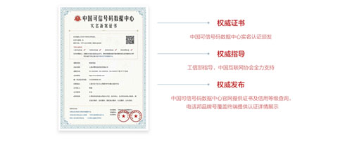 電話邦品牌號為企業提供最權威的第三方認證,由工信部指導的中國可信號碼數據中心,對企業號碼進行實名認證,并核發可信號碼實名證書,提高號碼可信度。
