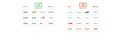 18家手機廠商加14家軟件廠商及累計覆蓋10.2億移動終端;
