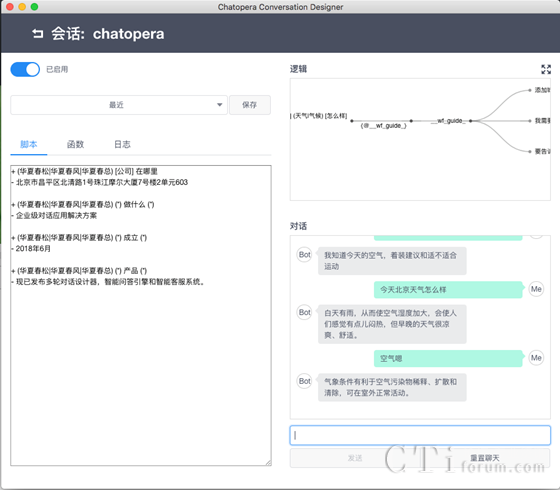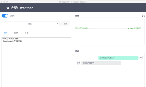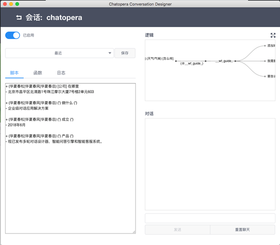 | 邏輯 | 聊天機器人的思維邏輯導圖,保存腳本后自動生成 |
