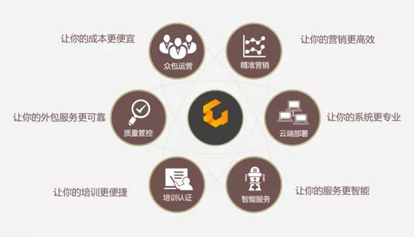 依托SaaS平臺,融合大數據、智能化、移動互聯網和云計算技術,提供知識共享、人力共享、數據共享服務。幫助企業脫離市場、人力、資本困境,讓企業的營銷與服務更簡單。