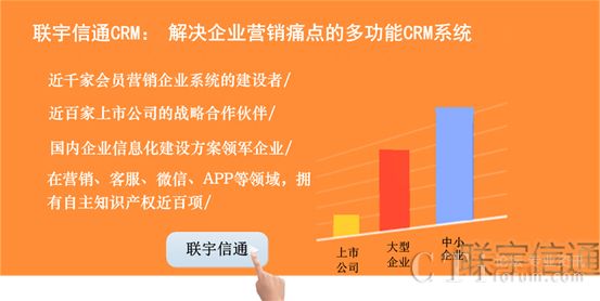 作為國內(nèi)企業(yè)信息化建設(shè)領(lǐng)域的領(lǐng)軍企業(yè),聯(lián)宇信通在為國內(nèi)近萬家客戶提實施系統(tǒng)建設(shè)方案的過程中,總結(jié)出了關(guān)于大數(shù)據(jù)應(yīng)用的一套完整的方案,并已成功幫助眾多企業(yè)在大數(shù)據(jù)應(yīng)用領(lǐng)域取得了輝煌的業(yè)績。下面簡單看下聯(lián)宇信通是如何將大數(shù)據(jù)與CRM系統(tǒng)糅合在一起的吧!