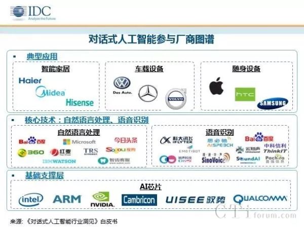 - 傳統(tǒng)廠商積極參與對(duì)話式人工智能的市場(chǎng)建設(shè)。如傳統(tǒng)家電廠商海爾、海信、美的等企業(yè),已經(jīng)與百度、科大訊飛,云知聲等語音技術(shù)廠商合作,逐漸將對(duì)話式人工智能技術(shù)應(yīng)用于智能家居場(chǎng)景。