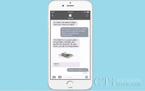 Business Chat可以在iPhone、iPad和Apple Watch提供,除了回應客戶的查詢,Apple還提及Business Chat可以協助用戶解決問題,甚至可進行交易。