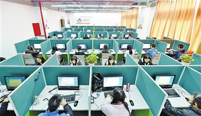 “您好,歡迎致電客戶服務熱線,客服代表很高興為您服務,請問有什么可以幫助您。”在云浮中唐服務外包有限公司的一個呼叫服務室中,忙碌的接線聲此起彼伏。記者看到數以百計的客服人員,有的頭戴著話筒忙于電話接線,有的穿梭于各個網絡服務平臺,綿言細語中夾帶著不時敲擊鍵盤的“嘀嗒”聲。他們坐陣云浮大數據的巨大網絡中,服務半徑跨越1000公里之外。