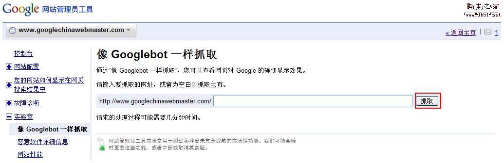 首先,登入網站站長工具中,“像Googlebot一樣抓取”功能就會出現在實驗室版塊的導航菜單的最下方:
