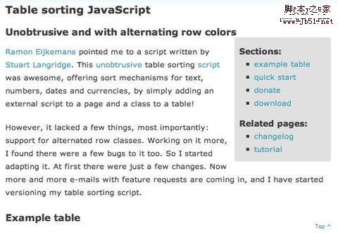 網頁包含一個title,內容。 內容可以包含段落,列表,引用,圖片和表格。所有這些類型的信息都有自己特定的標記。我們將所有這些標簽以標題開始。使用此有關排序表的網頁作為例子引出以后要描述的點(不好翻譯,原文:Use this page about sortable tables as an example to follow along with for the coming points.)。