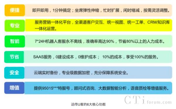 遠傳U客SAAS級平臺服務,即開即用,1分鐘上云。幫助企業實現客戶服務營銷一體化;多渠道客戶交互,統一視圖;7*24小時智能客服機器人不間斷服務;服務坐席按需擴展,彈性擴減。