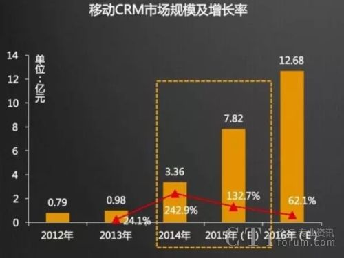 2016年,移動CRM市場規模超過10億元。移動互聯網之后,AI被視為改變所有行業的下一次技術浪潮的主角,CRM在AI落地應用上,有著其它企業服務領域無法比擬的優勢。
