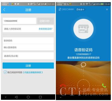 容聯(lián)云通訊與中國移動合作對外提供的一種新業(yè)務(wù):12590語音驗證碼,通過中國移動語音平臺電話直呼的方式向用戶語音播報驗證碼的一種業(yè)務(wù)形式。(移動、聯(lián)通、電信三網(wǎng)全覆蓋)可以解決目前短信驗證碼無法到達(dá)、到達(dá)不及時的問題,是當(dāng)前短信驗證碼的最有效補(bǔ)充方式。360手機(jī)衛(wèi)士、騰訊手機(jī)管家等安全軟件為12590語音驗證碼做了全量認(rèn)證,避免軟件攔截、減少用戶拒接,還能做到可個性化定制號碼,如:125909888-95587,提升用戶使用體驗。