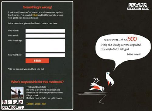 可能一個用戶在遇到一個404頁面的時候會有某種非常強烈的情緒。他們可能會很焦慮、擔心,或者他們會被氣瘋了……讓用戶發泄是個不錯的主意,因為你不可能成為他們的出氣筒,所以一個聯系表單可能就會湊效。當然,這不僅僅對他們有好處,對你也有好處,因為你可以找到問題然后去修正它或者預防它再次發生。