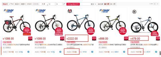 先來看看這個例子:從天貓上搜索一下“山地自行車”這個關鍵詞。