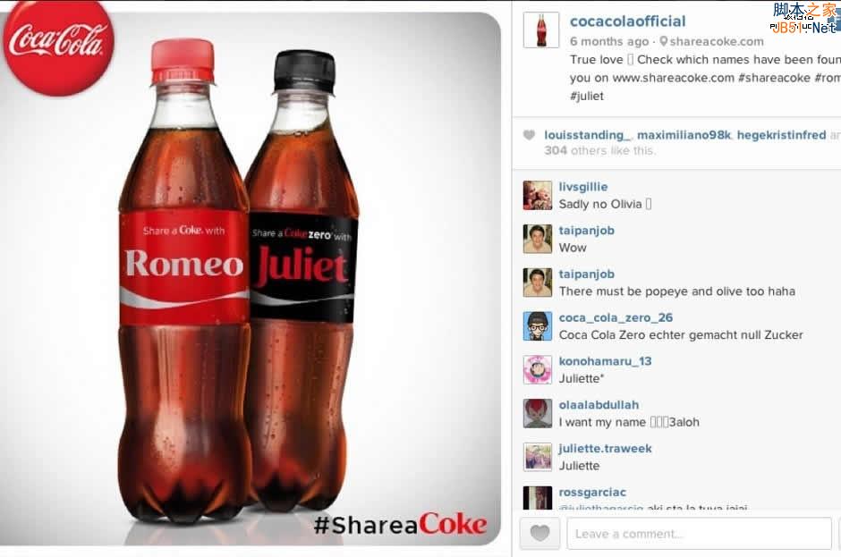 可口可樂公司今年夏天在全美發(fā)起名為“分享可樂”的宣傳活動(dòng)。他們選取全美250個(gè)最流行、最普遍的名字并將這些名字印在可口可樂的瓶子上。消費(fèi)者可以喝到印有自己名字的可口可樂,然后通過社交媒體讓其他人知道這件事情。如果你的名字恰好不在其列,你也可以在當(dāng)?shù)氐馁徫镏行倪M(jìn)行免費(fèi)定制。這次活動(dòng)最終在各大社交媒體上引發(fā)了超過12.5萬張?zhí)樱斋@了96%的正面評(píng)價(jià)。